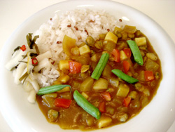 (4)ルーを加えて好みの味に整えたらしじみとエビ,イカを加えて一煮立ちさせて出来上がり。